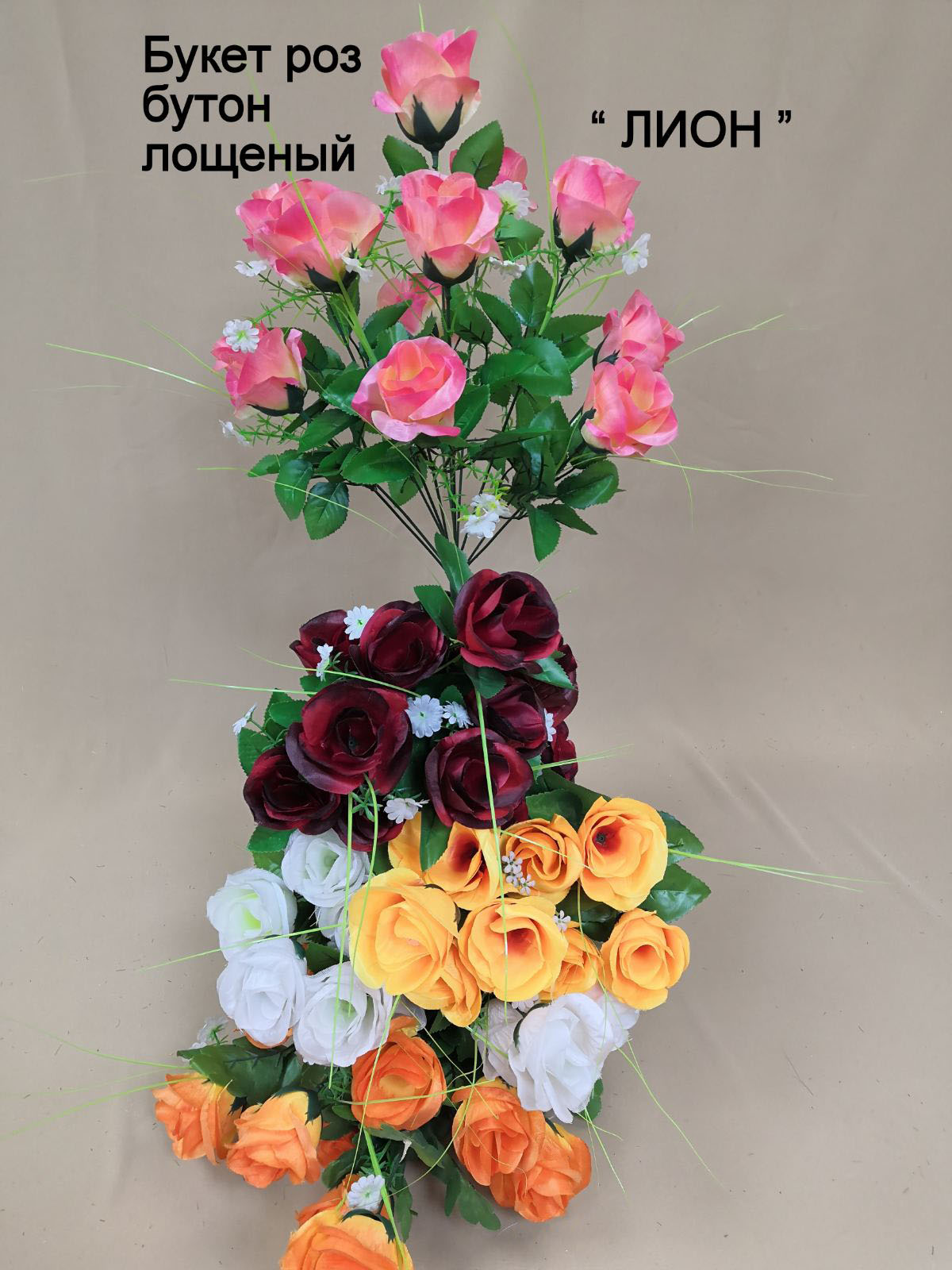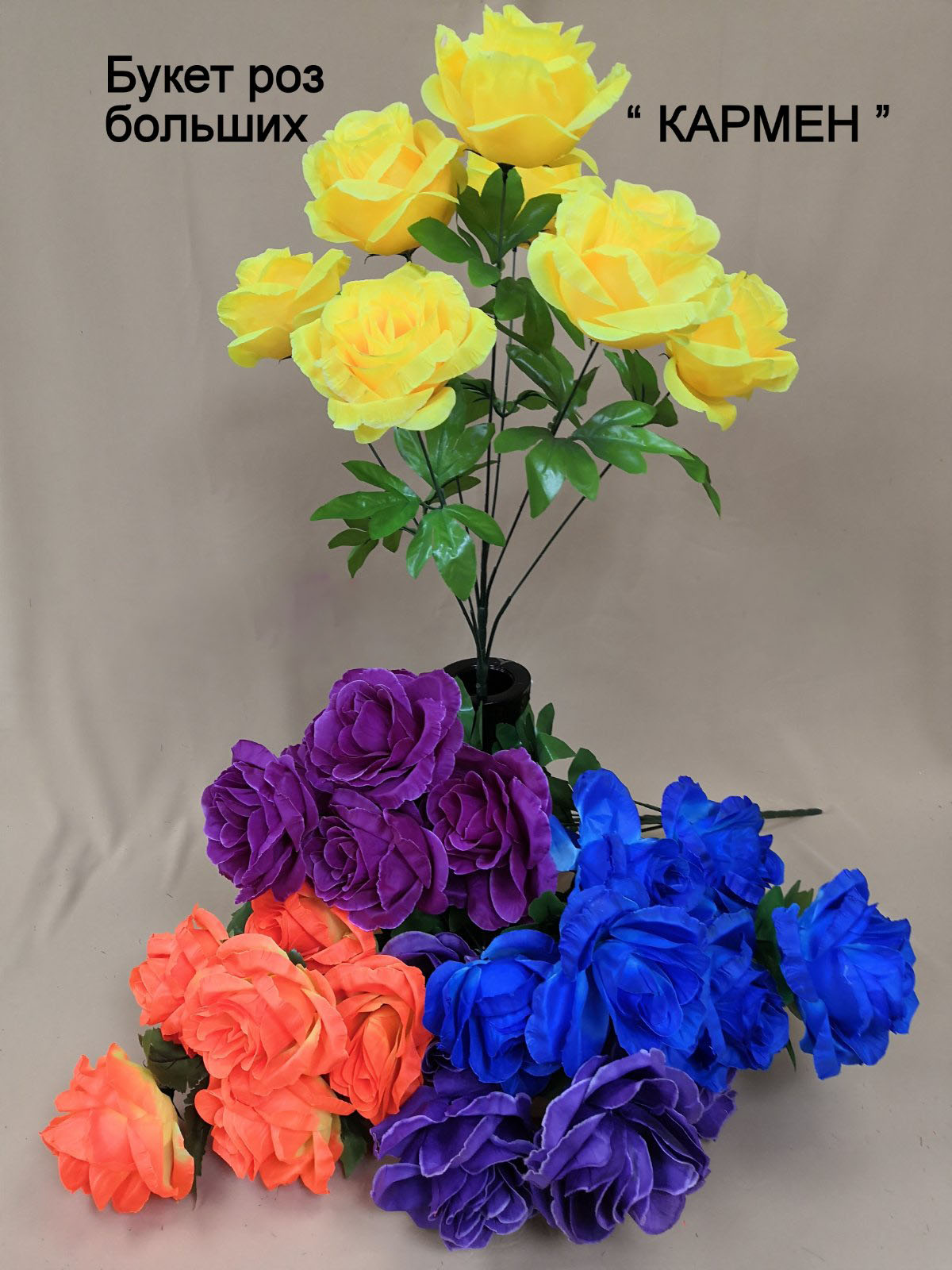 У нас Вы можете купить не только ритуальные венки и корзины на похороны, но и отдельно искусственные цветы для возложение на могилу на годовщину или День рождения и т.д. Все представленные на сайте искусственные цветы элитного качества и простоят долгое время – не облезут, не выгорят и не развалятся после первого дождя. Большинство представленных товаров сделаны под живые цветы.